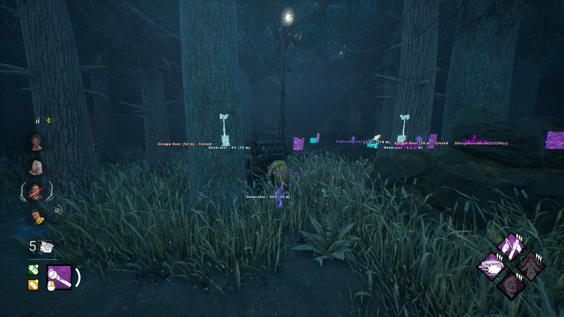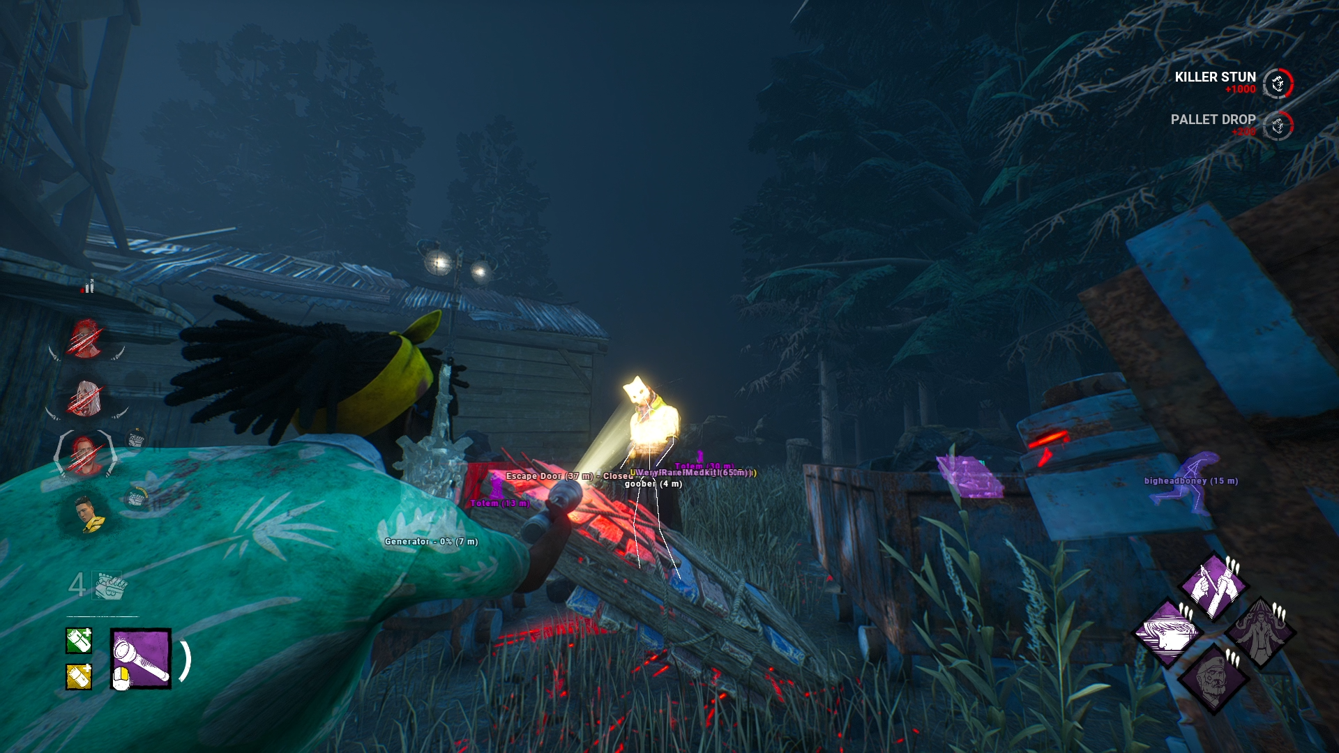 Safe interactions - while repairing the generator, breaking the totem, and during similar actions, hold down this function and killer will not be able to hit you